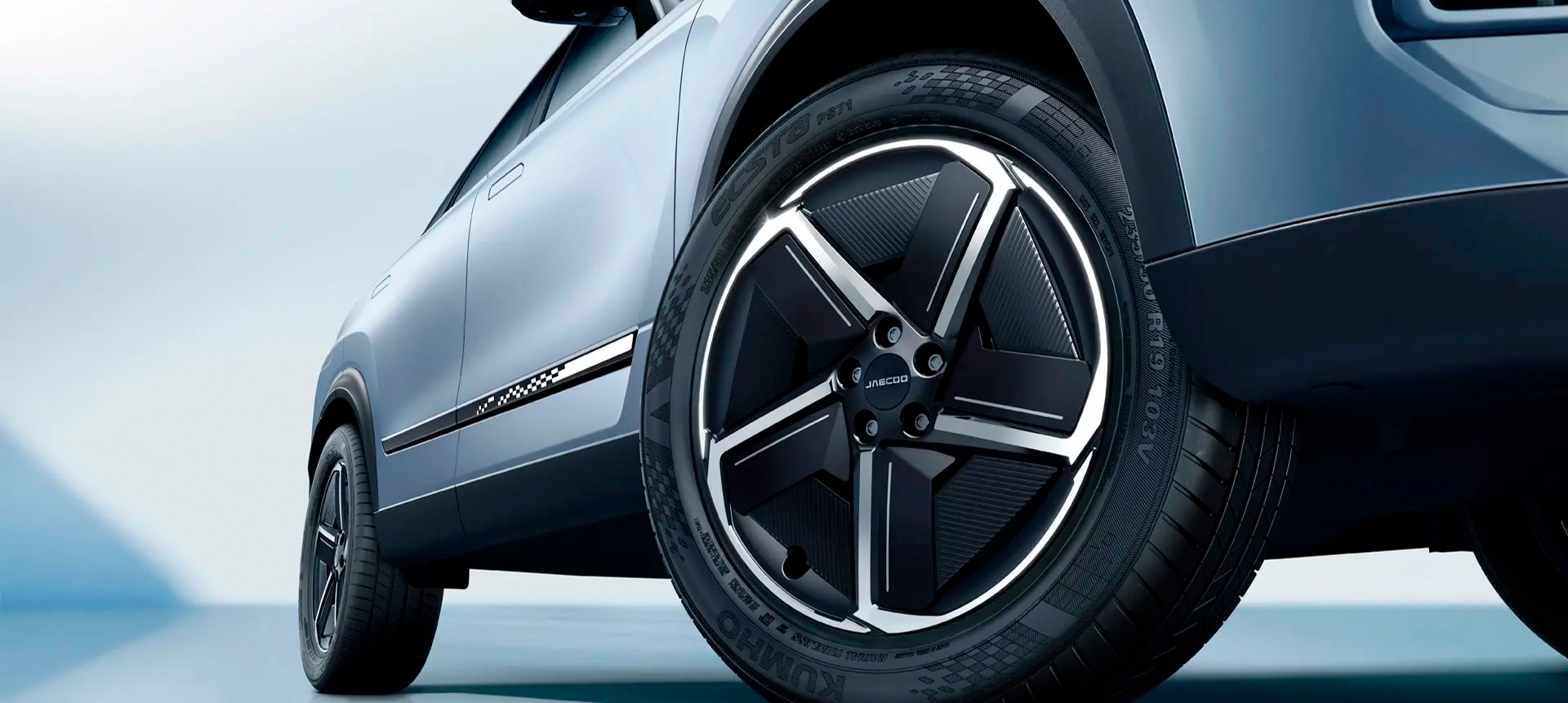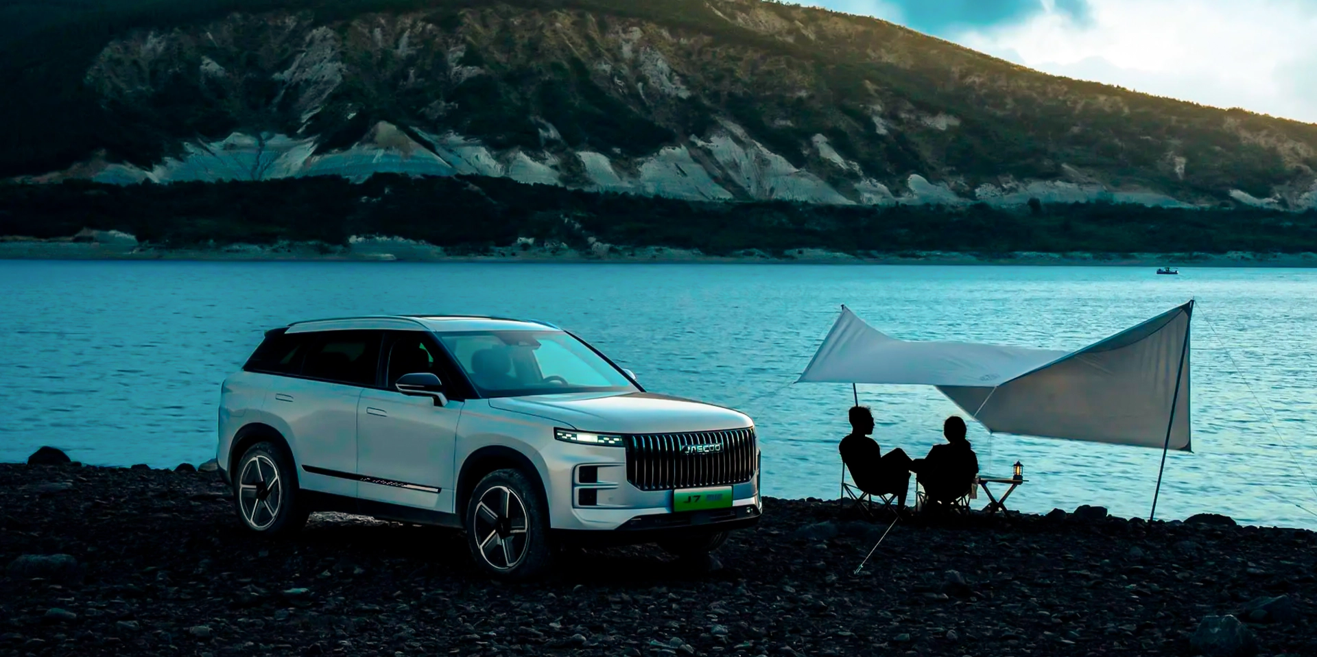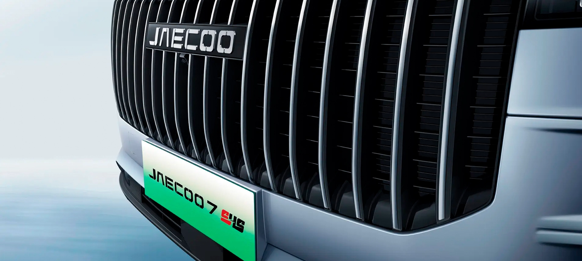 Ampla grade frontal com design waterfall confere ao Jaecoo 7 robustez e força.