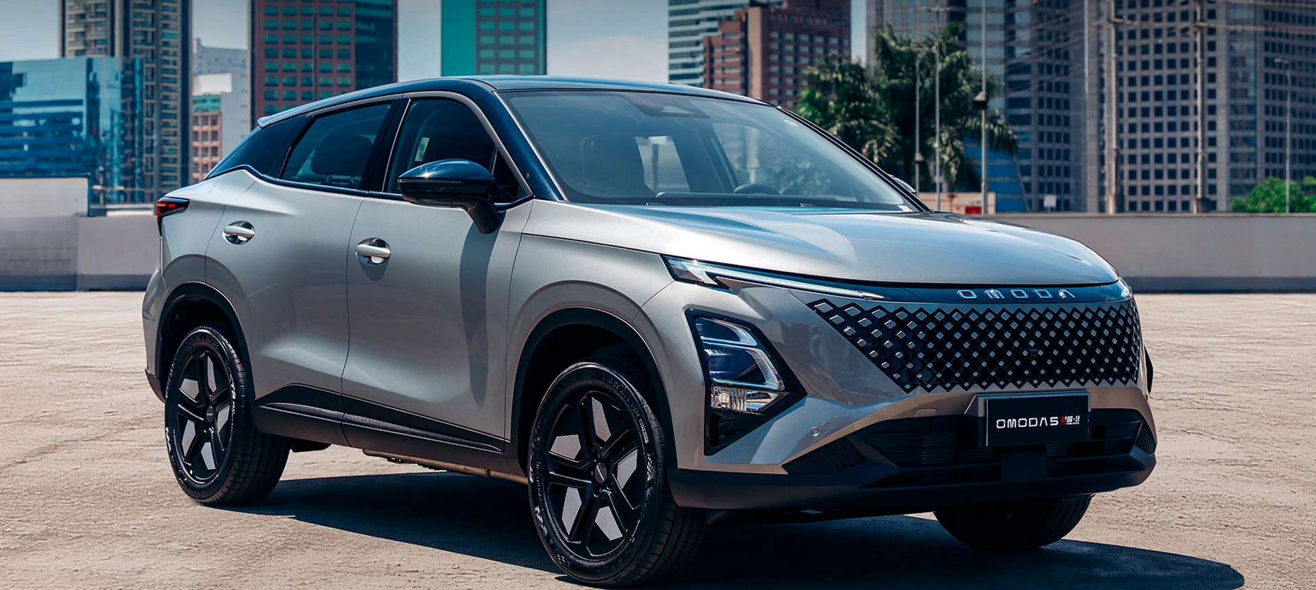 O OMODA 5 SHS-H destaca-se pelo design com linhas ousadas, proporções marcantes e uma silhueta que transmite personalidade em cada detalhe.