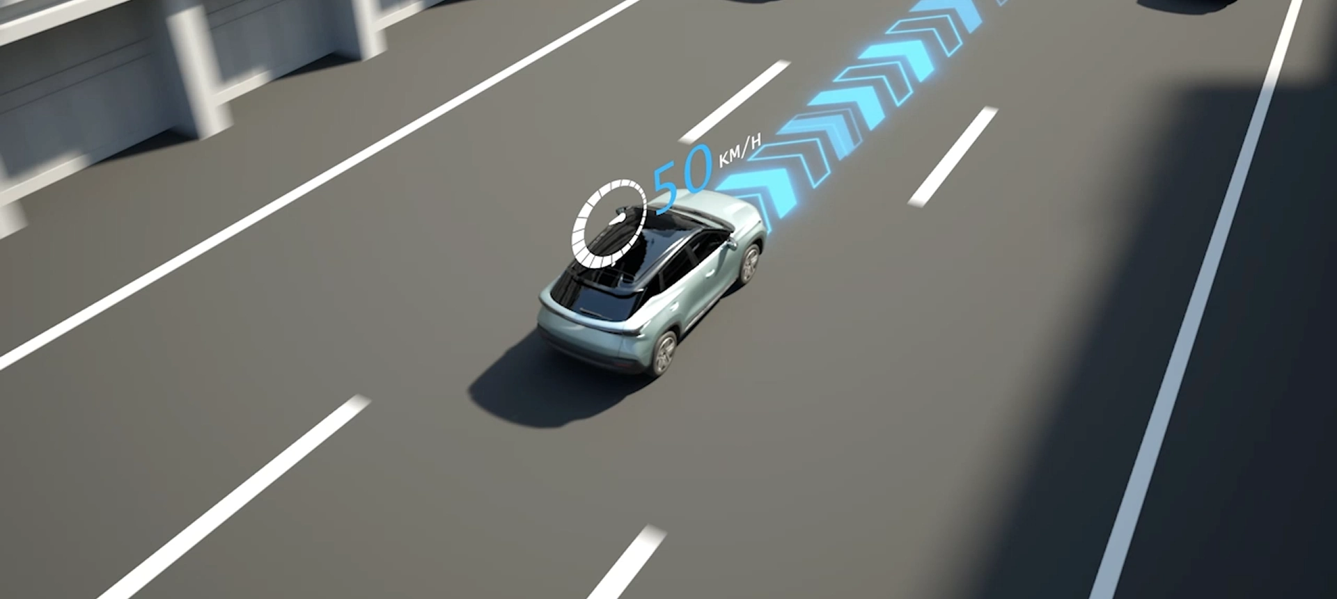 Mantém a velocidade do veiculo e ajusta automaticamente a distância em relação ao veiculo à frente.